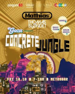 This month’s theme takes you on a journey where Brazil meets Brixton, blending Afro-Brazilian rhythms, Latin grooves, and global club sounds into one unforgettable night. Join us for Concrete Jungle, a dance floor experience powered by world-class selectors: DJ Mathias, Thomas Blondet, and DJ Melina. Expect an electric mix of samba, baile funk, reggaetón, and house cuts that will keep the crowd moving from the first drop to the last beat.