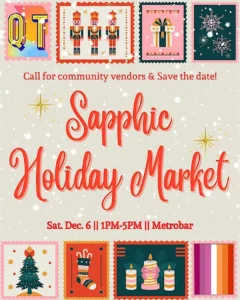 FRIENDS, QueerTalk DC is excited to bring back their annual Sapphic Holiday market. This event will feature 12+ Queer owned businesses selling holiday goods and so much more!