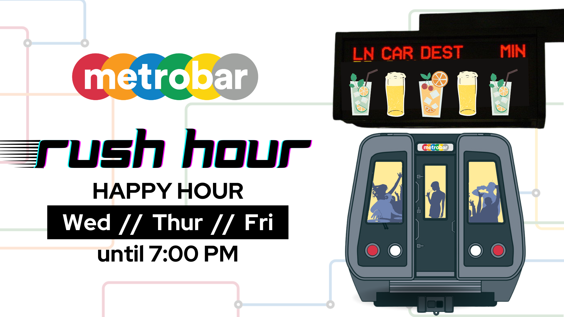 Join us for metrobar's "Rush Hour" happy hour, Wed & Thu 5-7PM, and Fri 4-7PM!